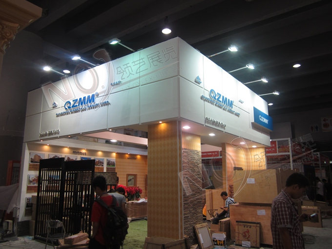 契合泉州五礦集團(tuán)的品牌形象和產(chǎn)品特性,采用矩形結(jié)構(gòu),再搭配燈具燈光的效果,襯托出展位高端、時(shí)尚的氛圍,突出一種現(xiàn)代、大氣的時(shí)尚品味。
