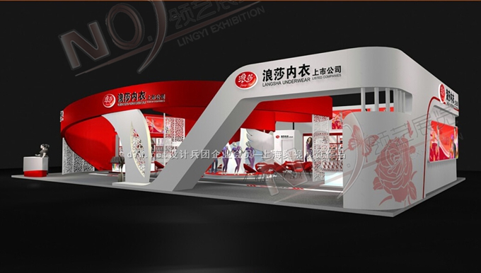 契合的浪莎襪業(yè)品牌形象和產(chǎn)品特性,采用矩形結(jié)構(gòu),再搭配燈具燈光的效果,襯托出展位浪漫溫馨的氛圍,突出一種青春、活力的時尚品味。