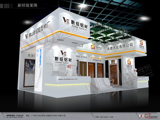 契合新邵鋁業(yè)的品牌形象和產(chǎn)品特性,采用框型結(jié)構,再搭配燈具燈光的效果,襯托出展位簡約、便捷的氛圍,突出一種精致、簡約的時尚品味。