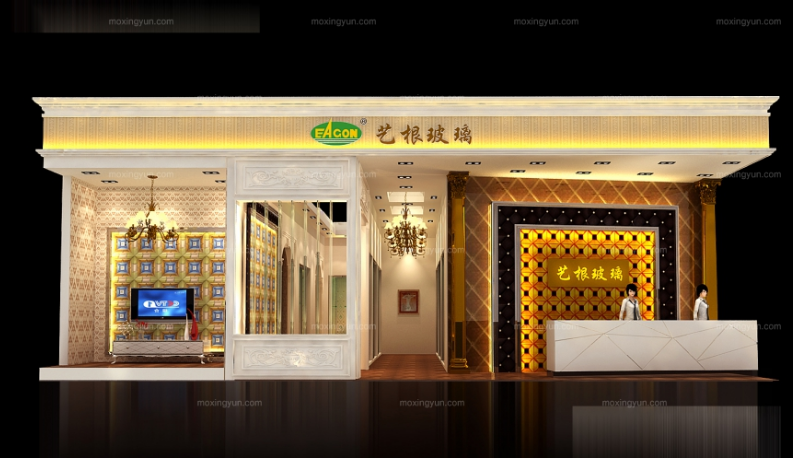 契合藝根玻璃的品牌形象和產(chǎn)品特性,采用線條、結構,再搭配燈具燈光的效果,襯托出展位簡約、時尚的氛圍,突出一種現(xiàn)代、高端的品味。