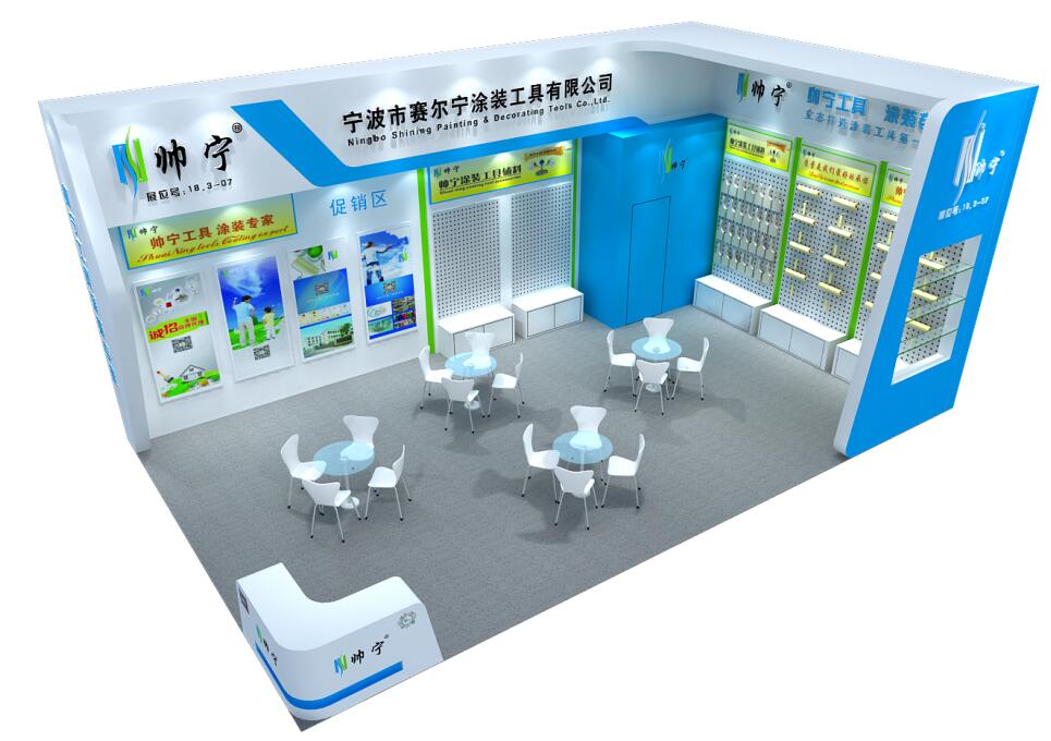 契合賽爾寧品牌形象和產(chǎn)品特性,利用白色和藍(lán)色突出產(chǎn)品,再搭配燈具燈光的效果,襯托出展位現(xiàn)代、突出一種現(xiàn)代、高端的時(shí)尚品味。
