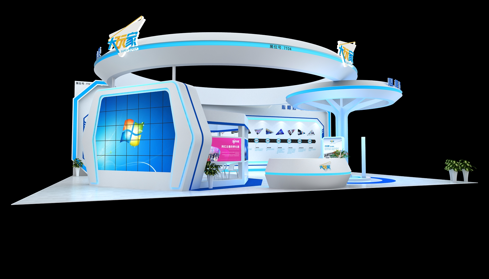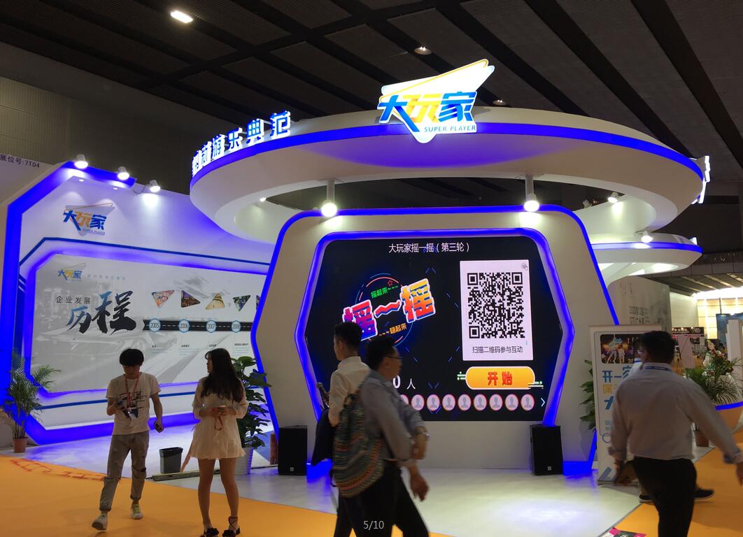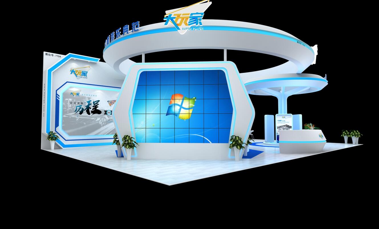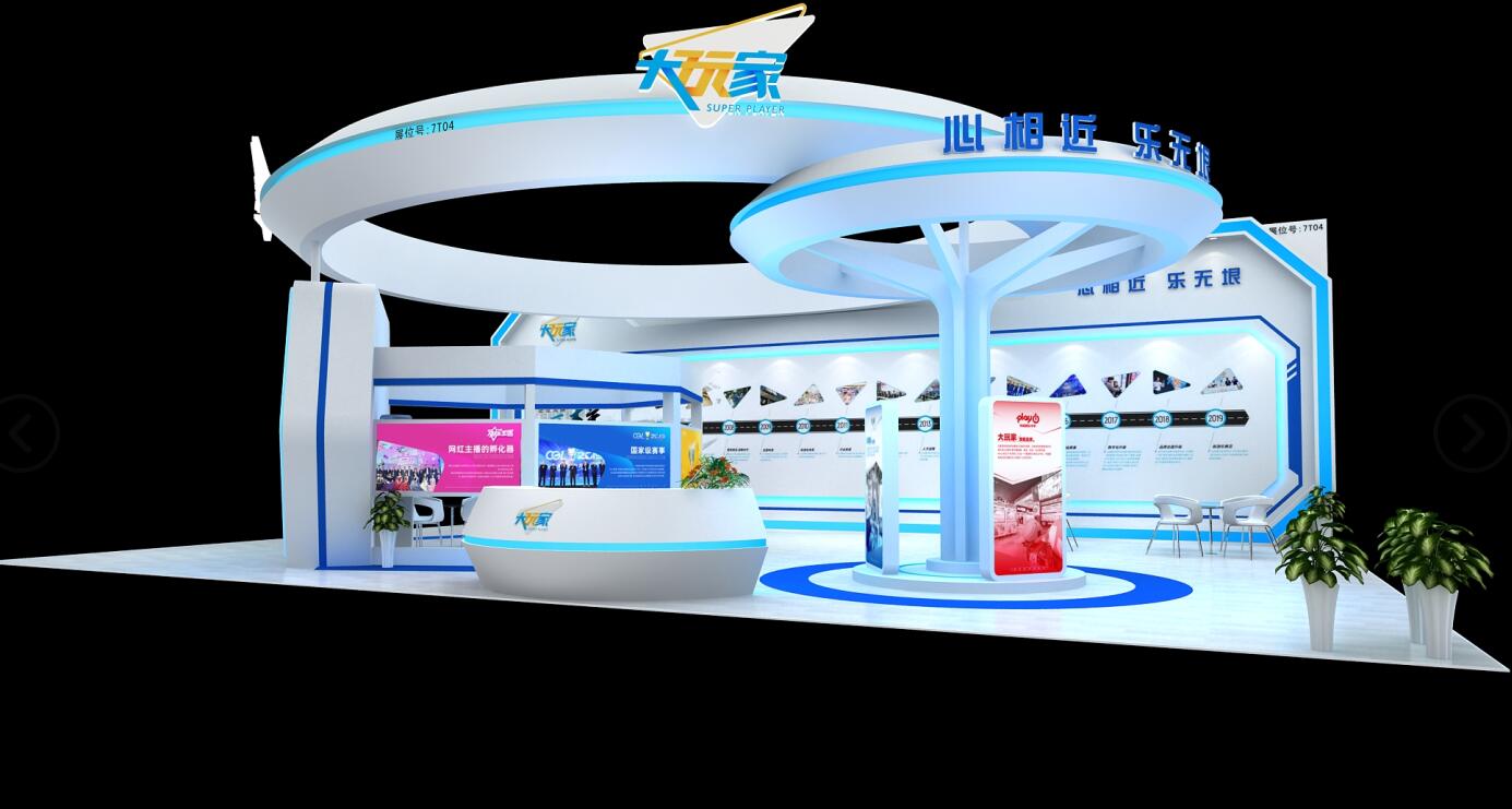 契合大玩家的品牌形象和產(chǎn)品特性,采用弧型結(jié)構(gòu),再搭配燈具燈光的效果,襯托出展位大氣、豪華的氛圍,突出一種簡(jiǎn)約、時(shí)尚的品味。