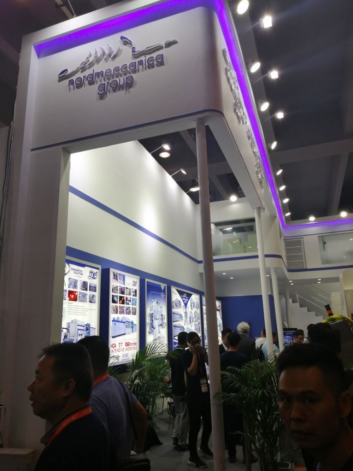 契合諾德美克的品牌形象和產(chǎn)品特性,采用雙層結(jié)構(gòu),再搭配燈具燈光的效果,襯托出展位大氣、豪華的氛圍,突出一種簡約、時尚的品味。