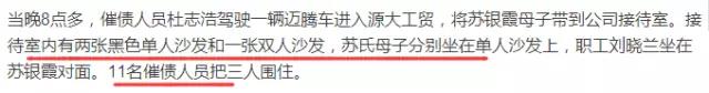 事情起因是這樣的,蘇銀霞開(kāi)辦的公司資金周轉(zhuǎn)遇困,不得已向吳學(xué)占借款共計(jì)135萬(wàn)元,約定月利息10%(遠(yuǎn)超法律規(guī)定的36%年利息上限)。在蘇銀霞共還款184萬(wàn)元,并將一套140平米價(jià)值70萬(wàn)的房子抵債后,“還剩最后17萬(wàn)欠款,公司實(shí)在還不起了”。結(jié)果,就遭到涉黑勢(shì)力的恐怖逼債。