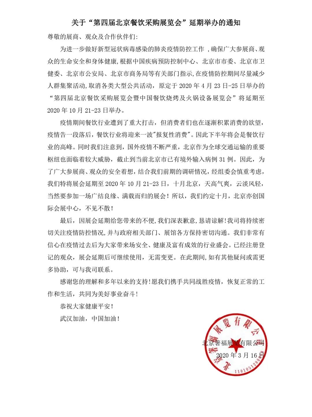 根據(jù)餐飲展設(shè)計(jì)搭建公司領(lǐng)藝展覽了解到,原定于2020年4月23日-25日舉辦的“第四屆北京餐飲采購展覽會暨中國餐飲燒烤及火鍋設(shè)備展覽會”將延期至2020年10月21-23日舉辦。如需餐飲展展會設(shè)計(jì)請聯(lián)系領(lǐng)藝展覽,希望我們能在餐飲展搭建上為您添磚加瓦,祝各位朋友收獲多多,滿載而歸!