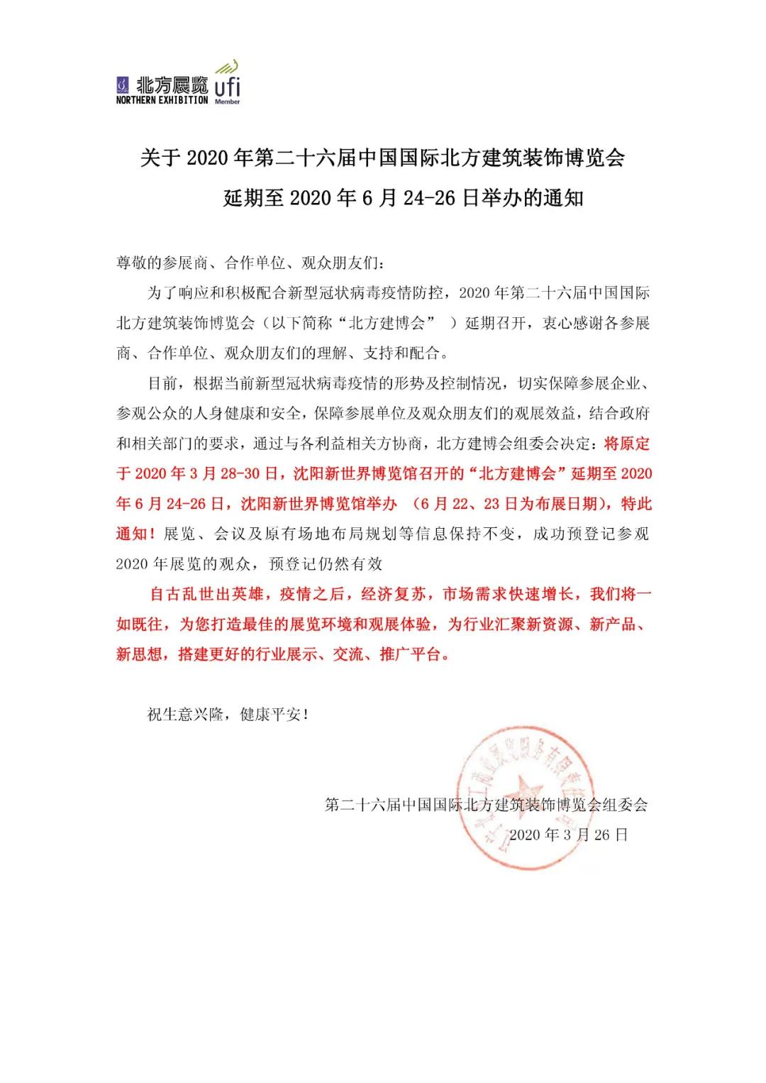根據(jù)建博會設(shè)計搭建公司領(lǐng)藝展覽了解到,原定于2020年3月28-30日,沈陽新世界博覽館召開的“北方建博會”延期至2020年6月24-26日,沈陽新世界博覽館舉辦。如需建博會設(shè)計請聯(lián)系領(lǐng)藝展覽,希望我們能在建博會搭建上為您添磚加瓦,祝各位朋友收獲多多,滿載而歸!