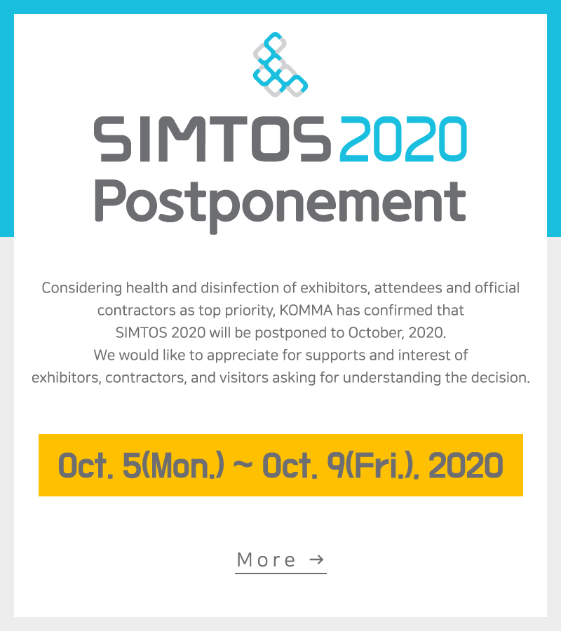 根據(jù)機(jī)床展設(shè)計(jì)搭建公司領(lǐng)藝展覽了解到,在韓國(guó)首爾舉辦的韓國(guó)首爾國(guó)際機(jī)床工具展覽會(huì)將延期至2020年10月5-9日舉辦。如需機(jī)床展展臺(tái)設(shè)計(jì)請(qǐng)聯(lián)系領(lǐng)藝展覽,希望我們能在機(jī)床展展臺(tái)搭建上為您添磚加瓦,祝各位朋友收獲多多,滿載而歸!