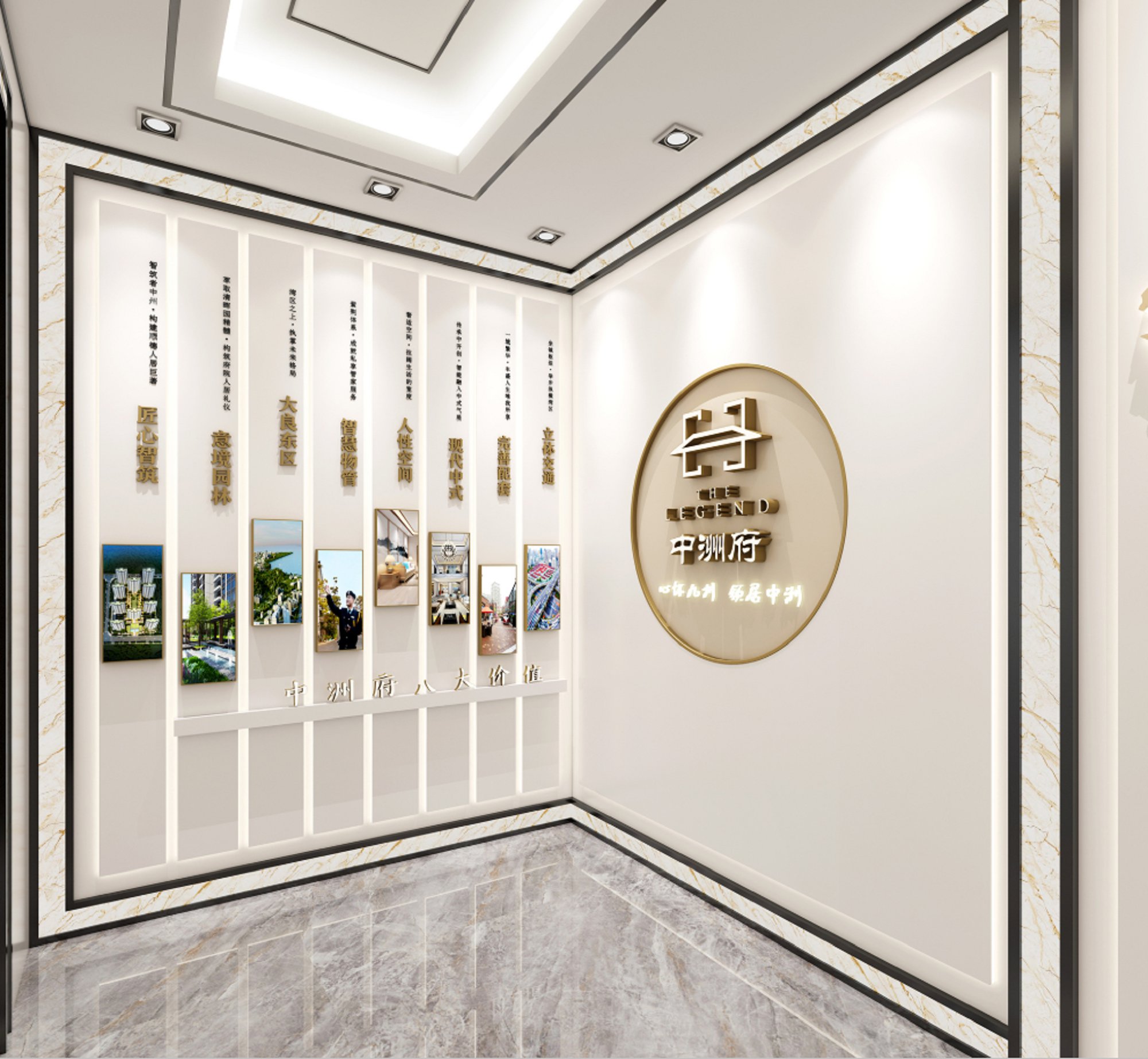契合中洲府的品牌形象和產(chǎn)品特性,采用開放式結構進行合理的分區(qū),再搭配燈具燈光的效果,襯托出展廳大氣、豪華的氛圍,突出一種簡約、時尚的品味。