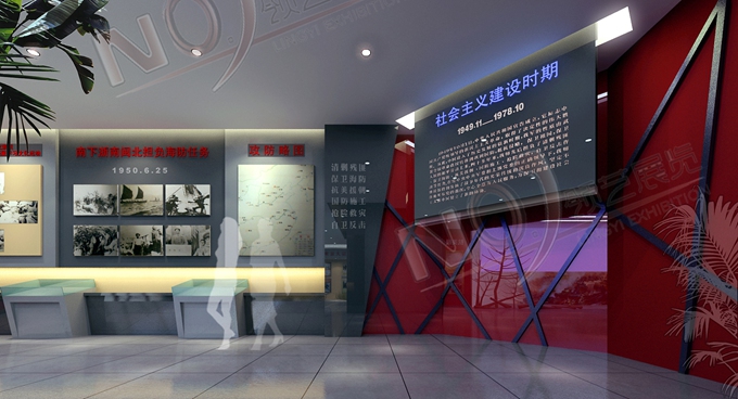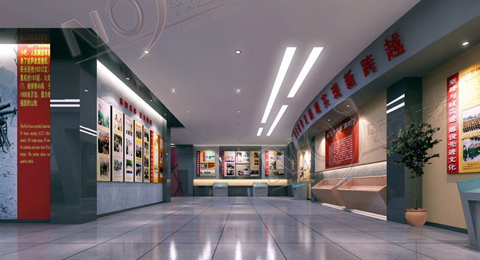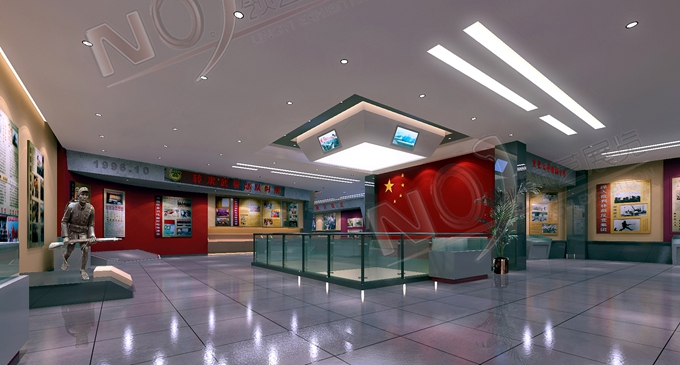 契合的蘭州軍區(qū)史館品牌形象和產(chǎn)品特性,采用矩形結(jié)構(gòu),再搭配燈具燈光的效果,襯托出展位高端、莊重的氛圍,突出一種嚴肅、肅靜的時尚品味。