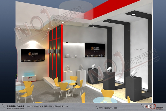 契合奇光的品牌形象和產(chǎn)品特性,采用矩形結(jié)構(gòu),再搭配燈具燈光的效果,襯托出展位時(shí)尚、簡(jiǎn)約的氛圍,突出一種現(xiàn)代、活力的時(shí)尚品味。
